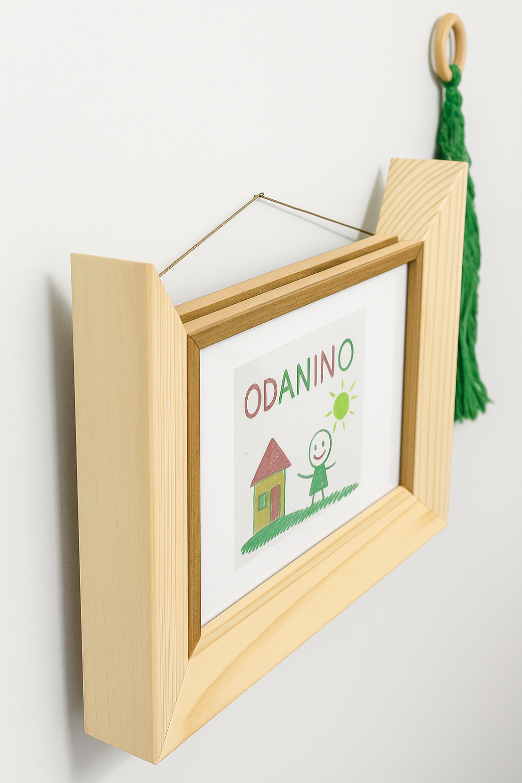 Minik ellerden çıkan hayaller, Odanino’nun ahşap çerçevesinde sonsuza dek yaşar. A4 boyutundaki resimler, doğal ahşap sıcaklığıyla evinize masal gibi dokunur.